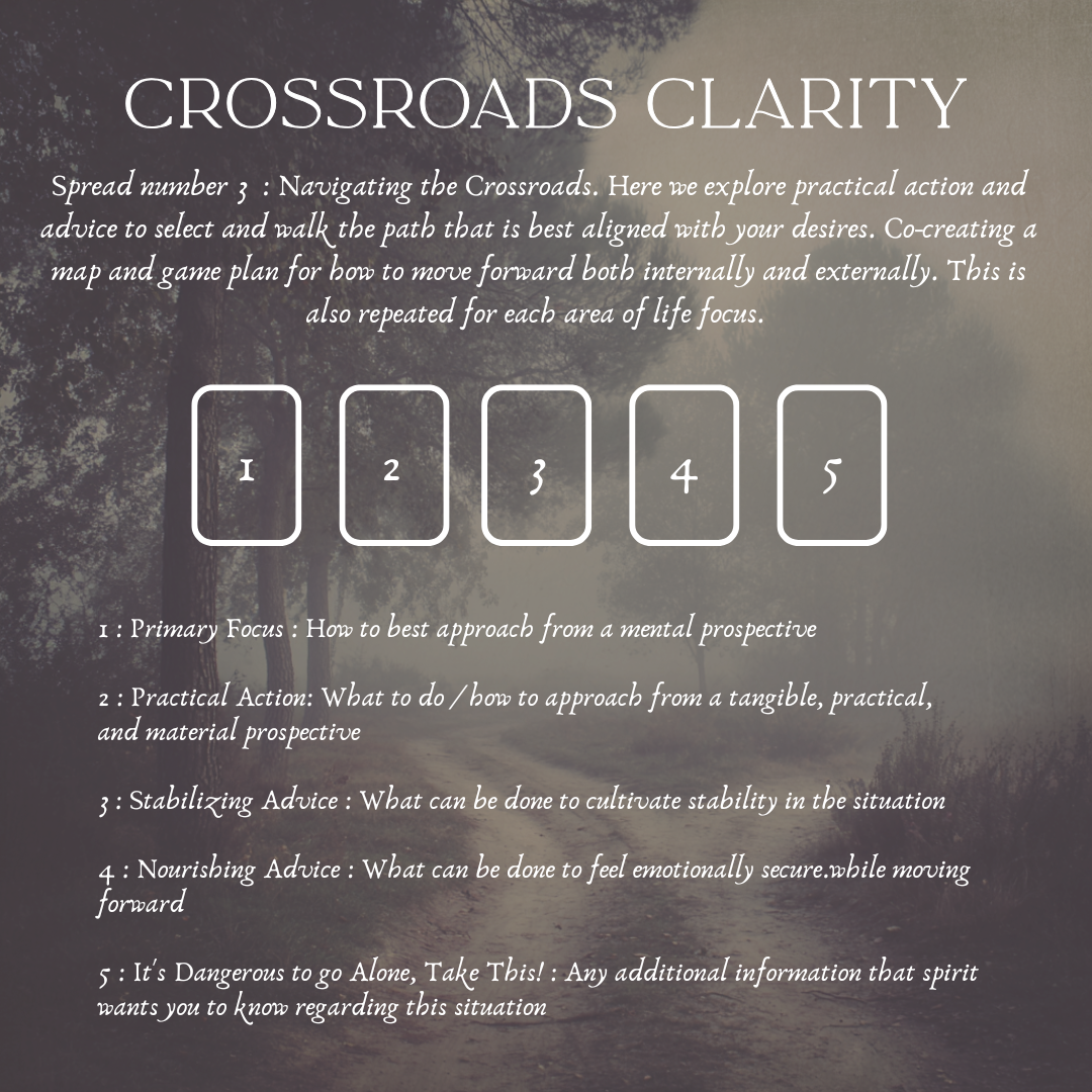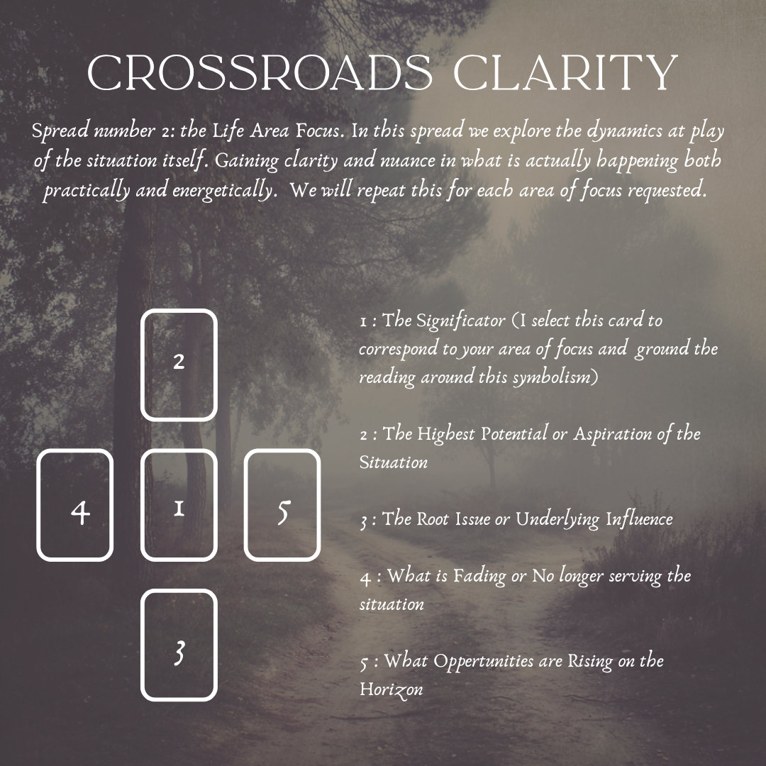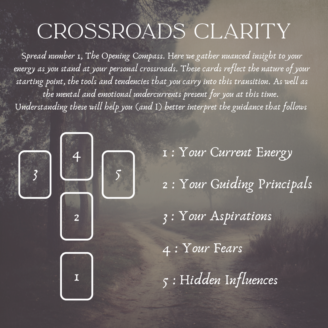 Standing at a major crossroads can feel overwhelming—but you don’t have to navigate it alone. This immersive, multi-spread reading offers nuanced insight into up to three life areas of your choosing, like career, relationships, home, or spiritual path.