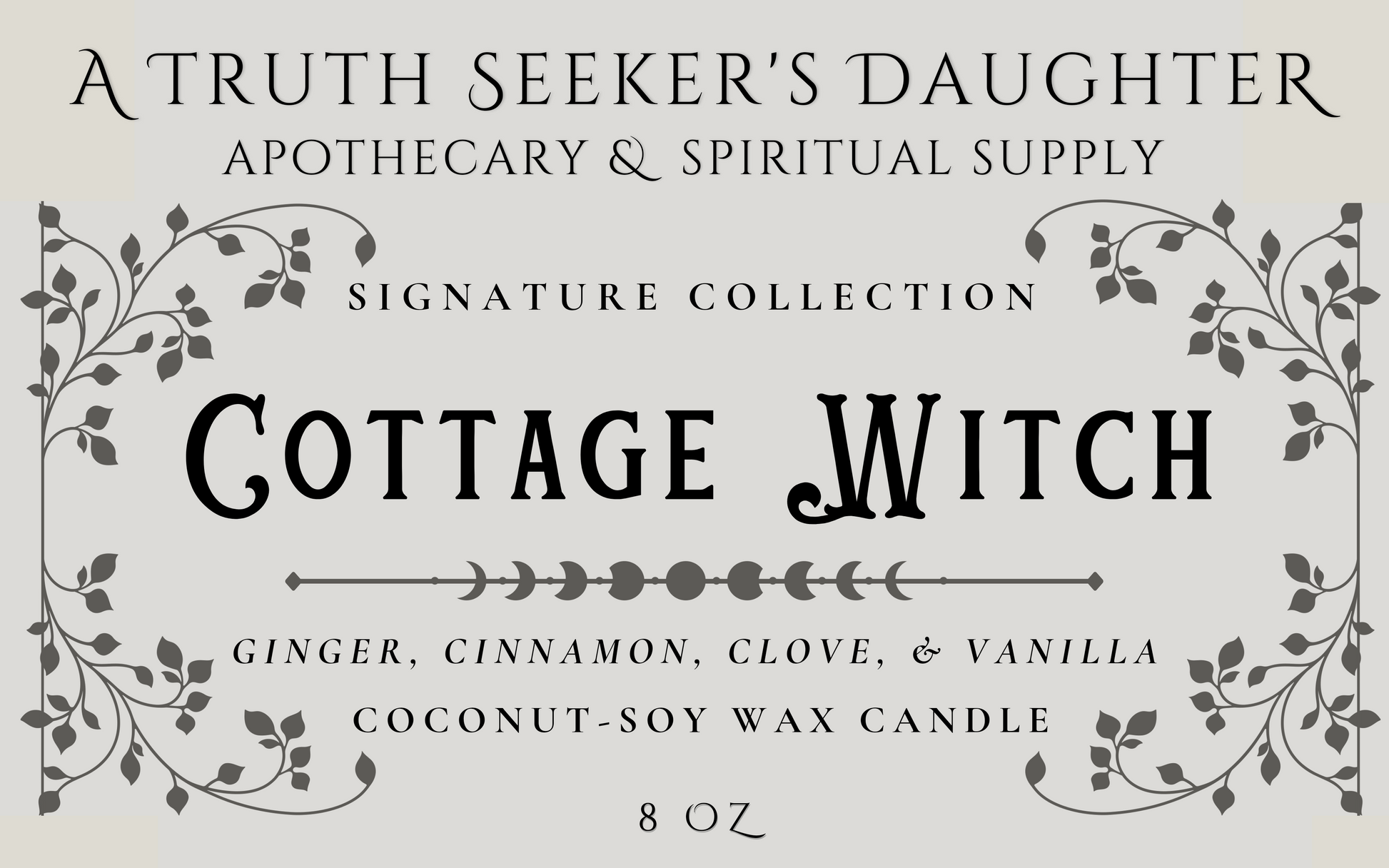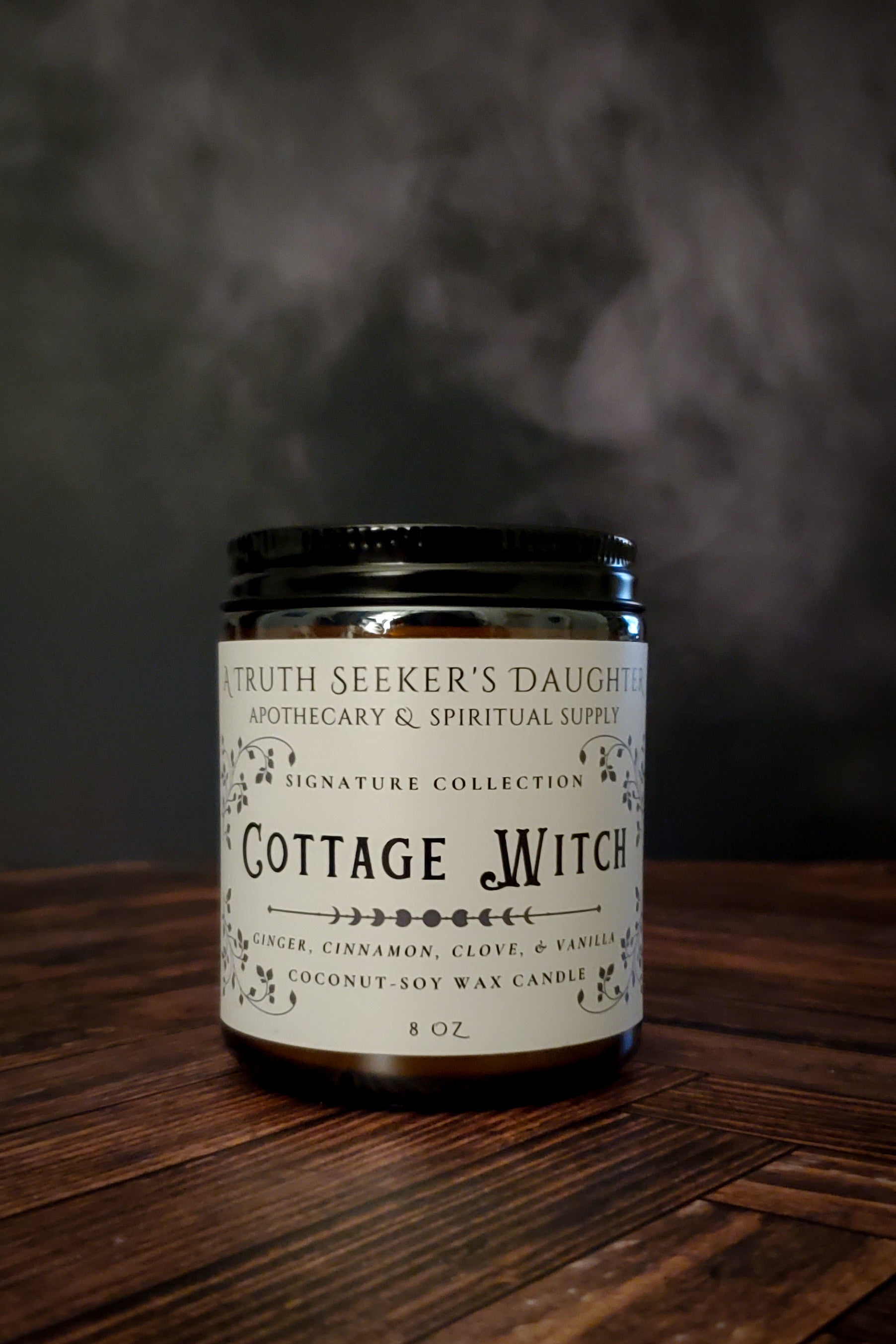 Step into the realm of enchantment with our "Cottage Witch" 8oz coconut soy wax candle. Follow your senses and allow this fragrance to lead you deep within the enchanted forest, where a cozy and magical abode awaits you. Residing within is a Cottage Witch, her cauldron simmering with delightful concoctions. Aromatic notes of ginger, molasses, cinnamon, clove, vanilla, and sugar weave together, conjuring the essence of the very best baked goods where magic and coziness unite.