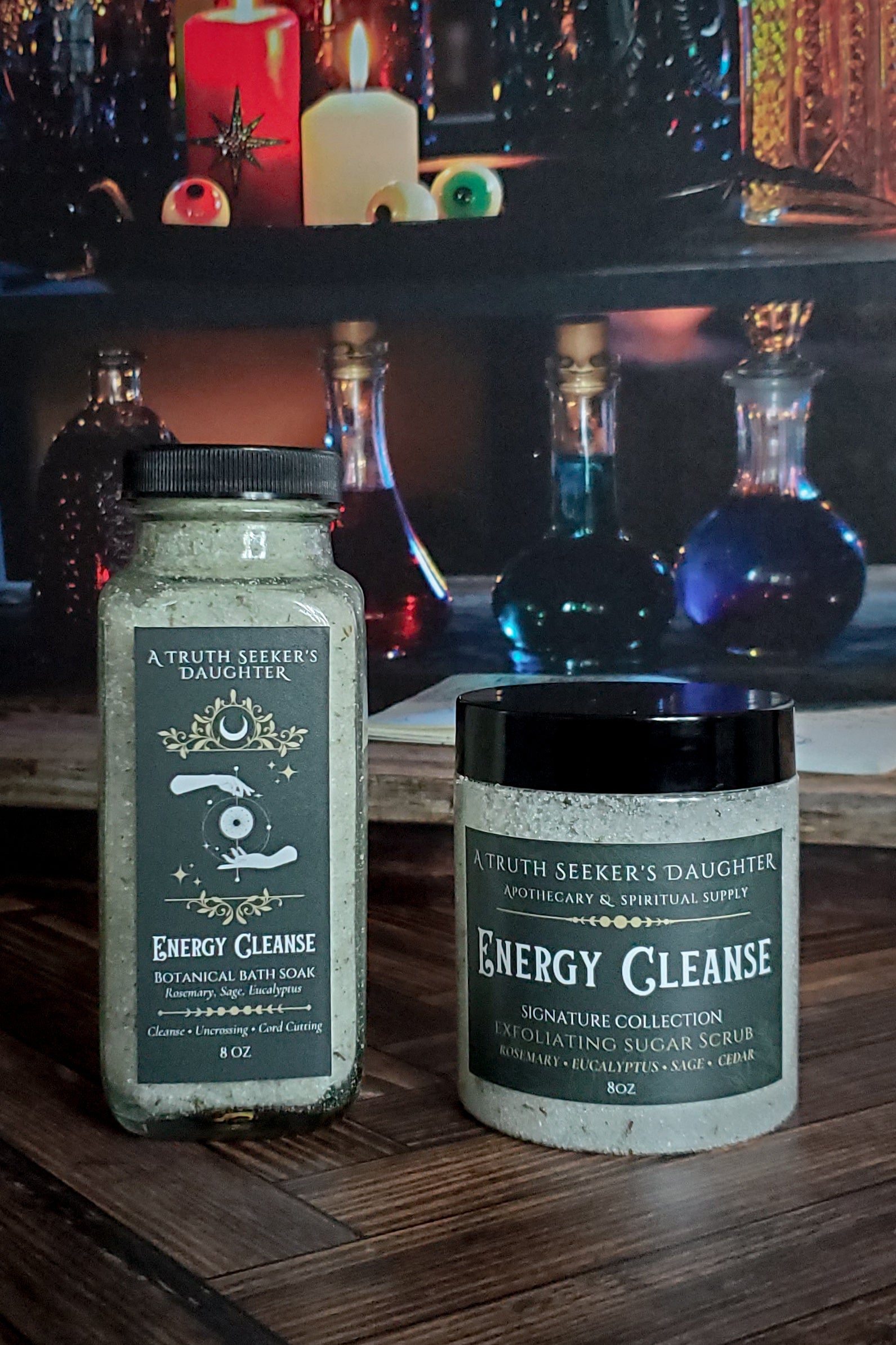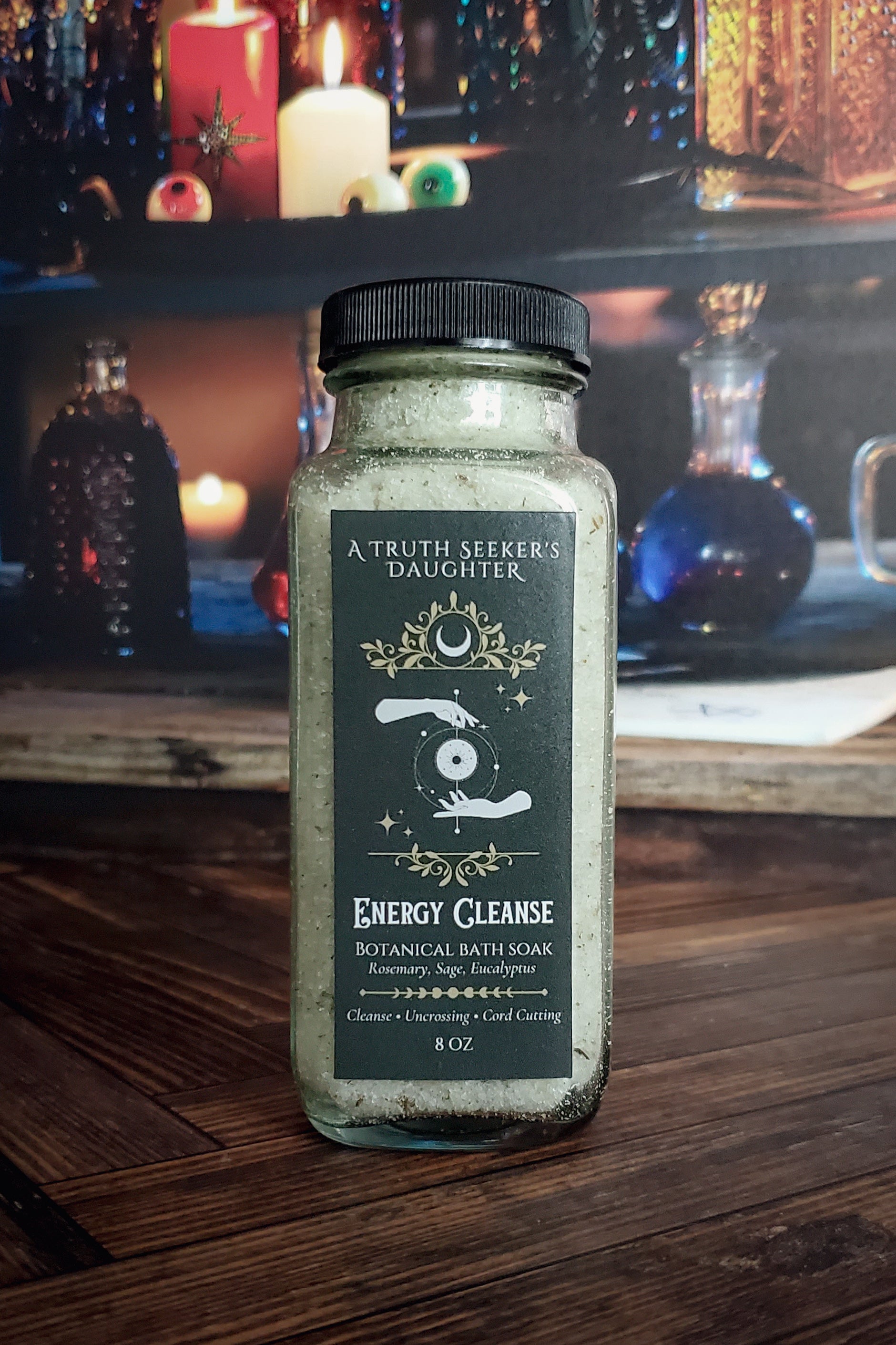Immerse yourself in the sacred waters of our Energy Cleanse Ritual Bath Soak. Crafted with a blend of power-house purifying botanicals: rosemary, garden sage, eucalyptus, and cedar, this enchanting bath soak is a gateway to deep purification and renewal.