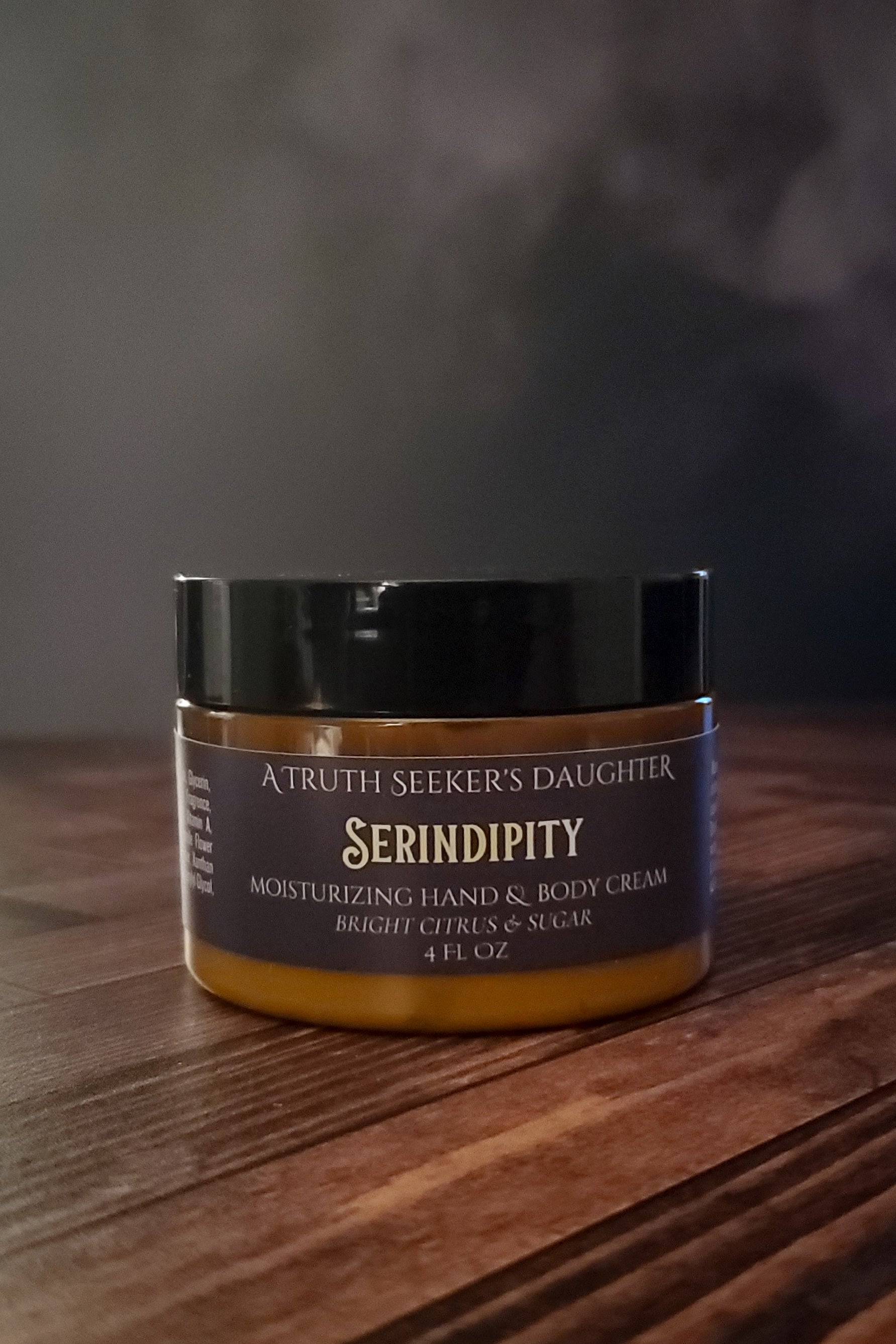 Enriched with a nourishing blend of skin-loving ingredients, "Serendipity" hand and body cream is meticulously formulated to provide deep hydration and replenishment for your skin. With each luxurious application, this cream invites you to revel in a moment of self-care and intention, empowering you to manifest a life filled with positivity, vitality, and unexpected moments of delight.
